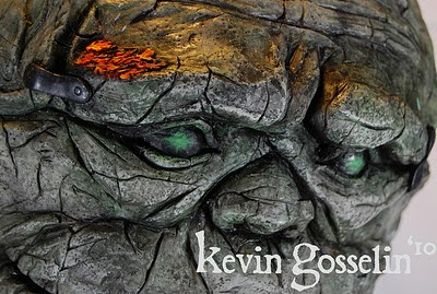 I make a homemade pizza. Yes. I’m a pizza nut too. I think every guy in the states has completely killed a woman’s taste for pizza because we would seriously eat it every night if we could. So I try to limit how often I have pizza and it’s my reward for finishing a piece. OH! Finishing? Oh, OK, I use Golden Acrylics Gloss and Matte polymer varnish. I put a layer of gloss on everything and then re-coat with matte on everything except areas that I want to look wet, like eyes. As for my signature, I seriously have to remind myself to add it. It’s not something I’m in the habit of putting. I don’t think that highly of myself to want to splash my name across everything like I’m some kinda brand. Don’t get me wrong, I WANT to be a brand, I just don’t want it to look like I want it. Actually, in almost all my pieces, I put small personal hidden details. The one that has essentially become my signature, is a scar next to the right eye of my character. I add this to essentially make the character me. When I was 14 I got a serious cut along my face from where my GIGANTIC bottle thick glasses shattered and dug straight into my skull. You can see on the stone golem I really made a huge scar and even gave it the marks created by the 12 stitches.