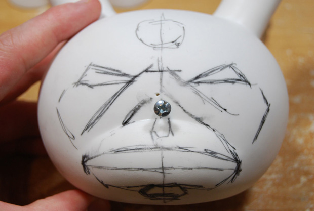 How do you apply your design? Do use markers, brushes, frisket, painters tape, acrylics, polymer clay, plumbers putty, etc.? What products and how do you use them – mold, bake, spray, etc.?
