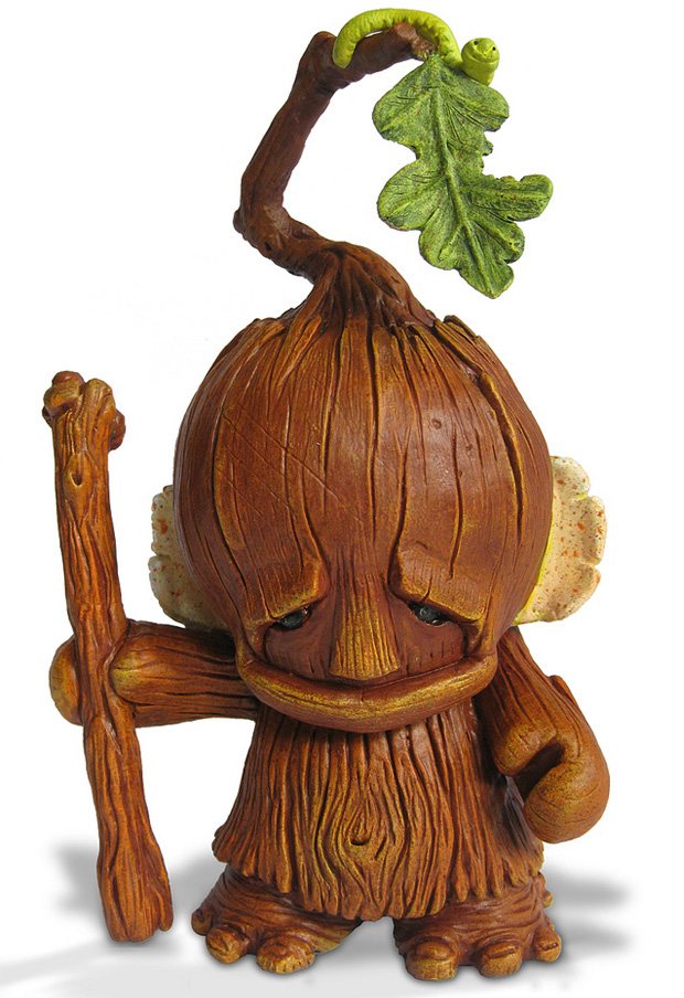 Not usually. It’s funny that when I was young, I was the guy known for drawing doodles over everything I owned. My closet back in my mother’s home where I grew up may still have a spaceship dashboard drawn on the wall. I used to love drawing so much, but these days I find it’s not as fun any more. I want to skip over that step and create a tangible thing. But sometimes, I will do a real rough thumbnail sketch on paper to plan things out. I also like doing sculpt sketches especially since I’ve started using Magic Sculpt. Magic Sculpt air dries and has a good working life of maybe one hour so I really need to plan out my concepts before jumping in. But if I had my way, no sketches would be necessary. I hate planning things out. It takes the fun out of it. For me, there’s nothing more enjoyable than the first exploratory pushes of the clay. I really like to let the clay find itself and show me who the character is. I work very intuitively, never really knowing what I’ll get until I’m just about done. For instance, Bacon was a character that derived from me simply saying, I want to do another dunny eater piece but this guy will have TUSKS!! As the character develops I get to know them and I say, what’s their story? What do they need to flesh them out. Bacon needed a shied and a halberd. I will say though that reference is always an important step for me. When I start, I like to Google search images of everything related to what is is I’ve got in my mind. First I want to see if someone has done what I’ve done. And how they did it to be sure I don’t end up doing something too similar. I like to find textures that I can mimic, be it stone or wood. I like to find color schemes. I gather a folder of images to stare at while I work to be sure that I’m adhering to some sort of realism.