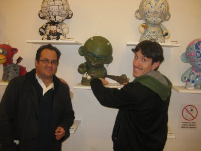 Big Thanks go out to Ron and his wife(whose name I\’m too deaf and stupid to understand and remember). They bought my piece today and will forever remain in my heart as two very cool people that started the ball rolling for me. I went down to the gallery today to meet a good friend who worked with me at my last job to show her the piece. As I was talking about with her, they came up to me and asked me if I was the artist. When I said yes, he said it was great and then I heard the words, \”SOLD.\” My dad\’s name is Ron, and they have twins(I am a twin) so it was extra specially fateful. Thanks again to them, and to KR for selecting me as a winner and allowing me to be in the show. Thanks to the Toy Baroness for helping throughout the process and to all the great comments I\’ve received. Today is a good day.