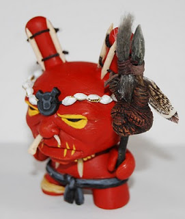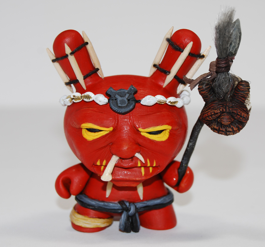 This concept didn\’t take but a few minutes to think of. Since the inception of my Dunny Eater for Munny world, I\’ve tried to make all my custom pieces fall into the realm of this fantastic world. So when thinking how a 3\” Dunny would actually fit into that would, I thought naturally he would have to be a cannibal. And once I thought about making a shrunken head, well, it was set in stone.