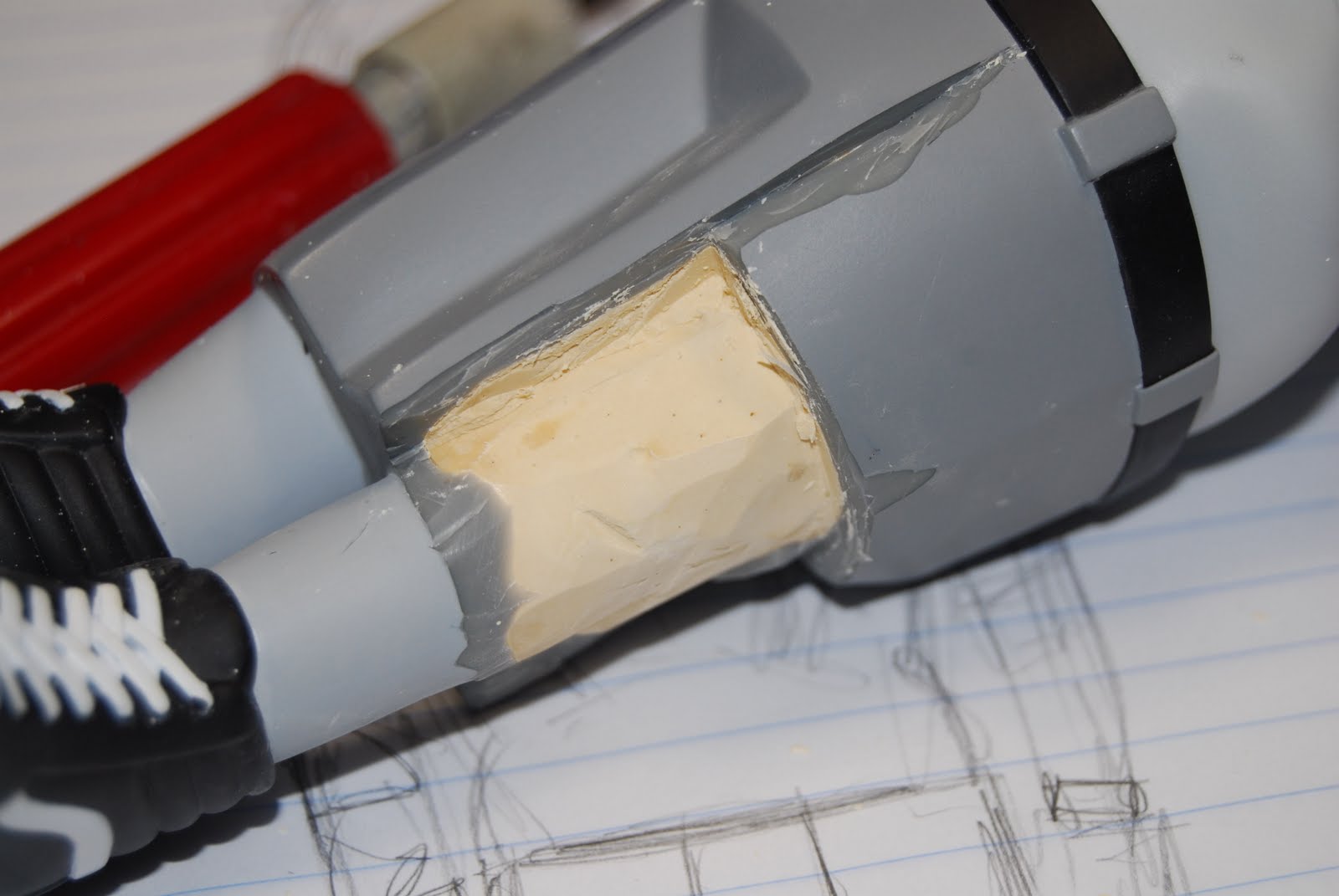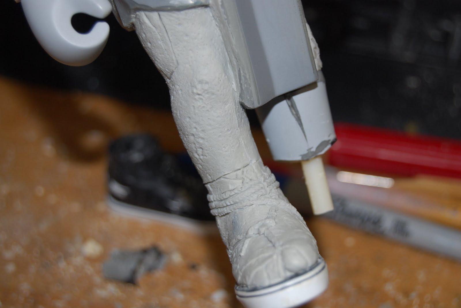 Usually I kinda relish diving right in and hacking and slashing the toys I\’m asked to customize. But I started this piece just days after I had heard about the slight controversy regarding Jason Freeny\’s Coarse Jaw. If you had not heard about it I\’ll sum up briefly. The client who commissioned the work was not happy when he received the piece and discovered scuff makes around the non-customized sections of the toy. With that on my mind I didn\’t dive in with as much gusto as I usually do. Fortunately for me though, my style is one that completely remakes the toy and its surface so everything the client see is intentional. Well, most everything, there are happy accidents.