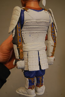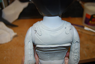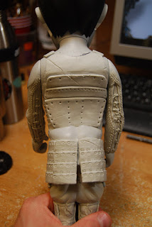 Here I have added the do (cuirass). I\’ve sculpted a gouge in the armor to represent somewhat where the old noop bandage used to be. You can see the plug right above my chest plate. I\’ve also sculpted the watagami (shoulder straps).