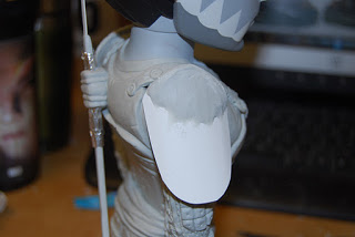 Here is the left shoulder arm completed and in the back you can see what was suppose to be a katana blade.