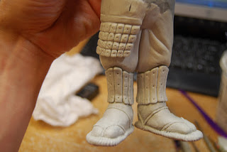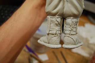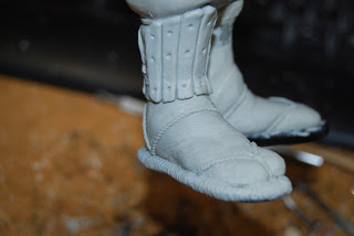 And here I\’ve sculpted the socks, sandals and begun the shin guard on one side.