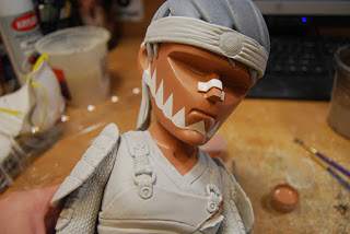 Sculpt is all done and I\’ve moved on to the paint job. I start with what will be the bottom most layer. I block in the flesh of the face.