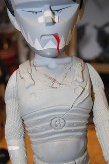 Here I\’ve removed more vinyl and sculpted the new pants on one side.