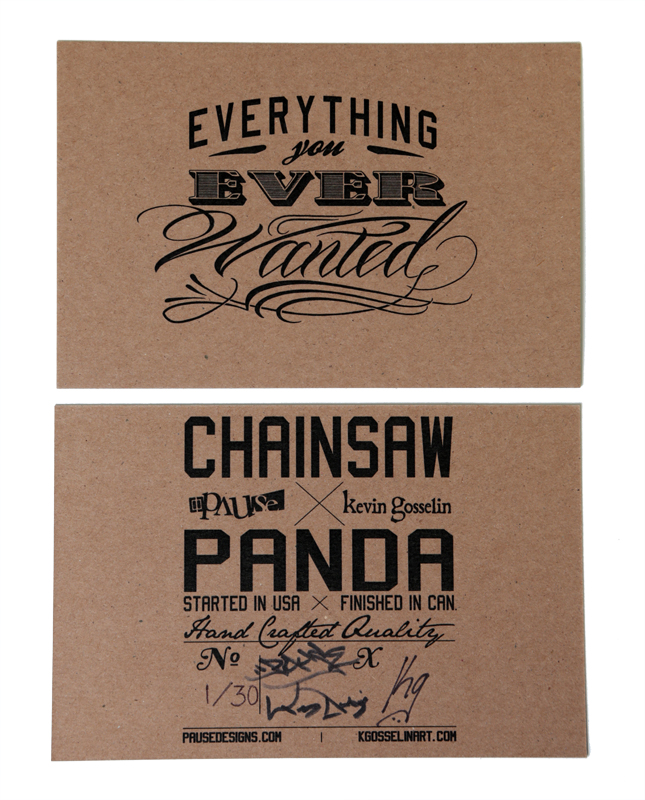This is a little after-the-fact but I wanted to post this on my blog anyways so that it\’s here and there\’s a record of it. The release went great and they sold out within a few days. All but 4 sold within the first 2 hours I believe. Thanks to everyone who purchased one and to all the kind words. And thanks to Eric Pause for asking me to be a part of this project. When he asked, how could I say no to the Chainsaw Panda. It\’s such a cool design and I think it\’ll be around for a while.